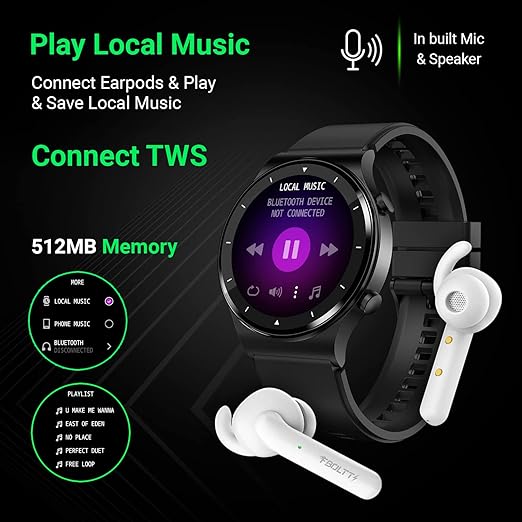 - 【Connect Earpods & Play & Save Local Music】- The watch allows you to connect your earpods and enjoy listening to music with this cross connection. Store your favourite music in the watch as local music. Play favourite music on the watch with the in-built speaker. System requirements: IOS 7.0 and above, Android version 4.4 and above, Bluetooth version 5.0 and above.