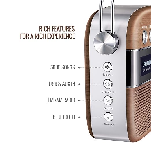 | Special Feature | FM/AM radio, 1 Year Warranty, Rechargeable battery; approximately 5-hour playtime when battery is fully charged, Android device compatible charger, 3.5 mm audio jack for connecting external speakers/ headphones, 5000 songs categorised into 130+ dedicated stations, Bluetooth, USB/Aux In support, Available with remote |